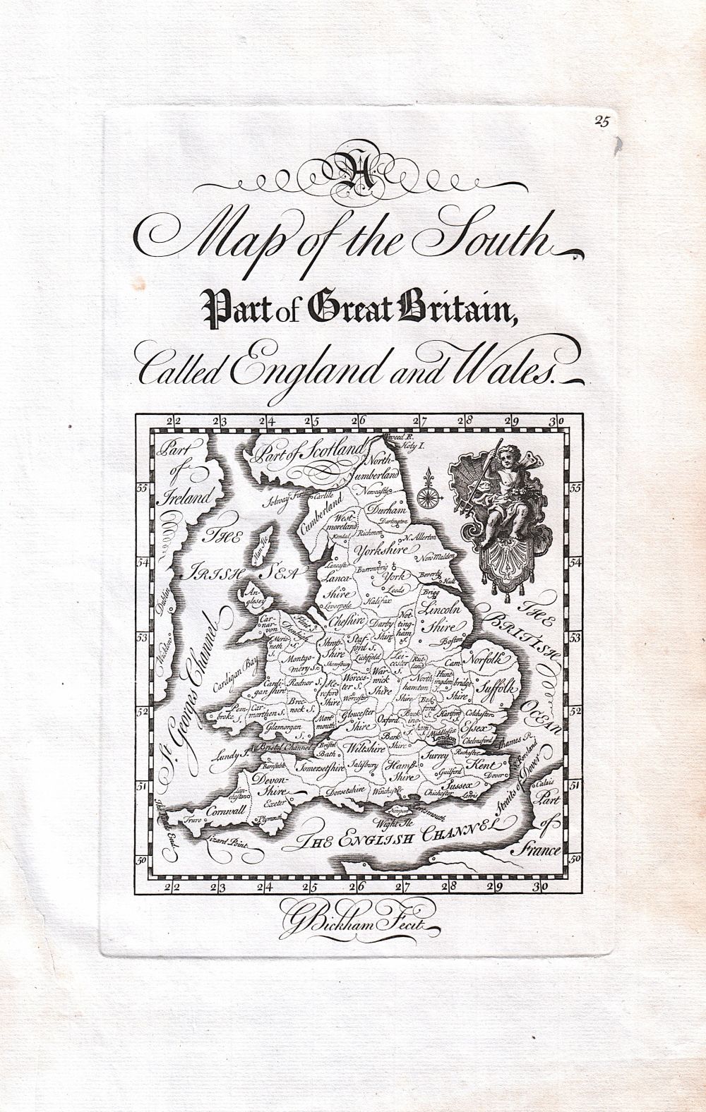 Home Antique Maps, Sea Charts and Town Plans England maps General Maps England and Wales G. Bickham - A Map of the South Part of Great Britain, called England and Wales