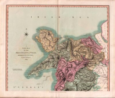 A Two Sheet Map of the Principality of Wales Divided into Counties. Shows administrative boundaries, cities, towns, rivers, roads, woods, parks and settlements. Very fine original wash colouring to the Counties. 'Published by J. Cary, Engraver and Map Seller. No. 181 Strand. Feb. 24th, 1809.