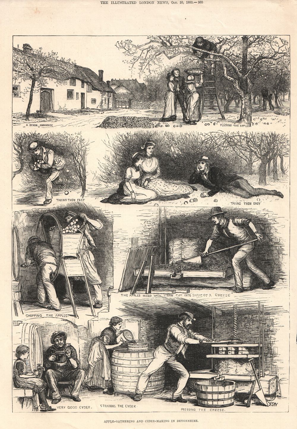 Home Antique Prints England Devonshire Apple Gathering and Cider Making in Devonshire.