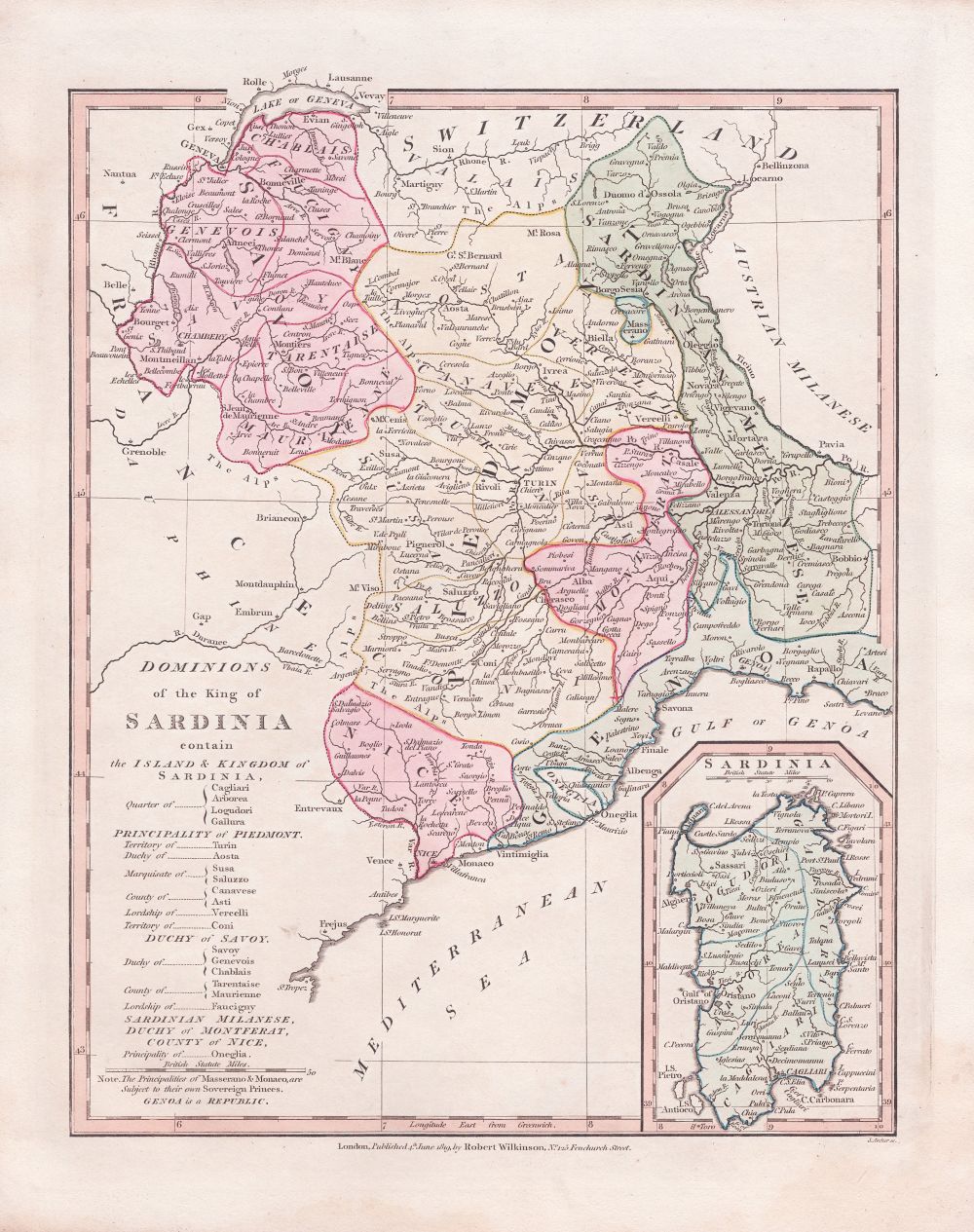Home Antique Maps, Sea Charts and Town Plans Europe Maps Italy Maps Dominions of the Kingdom of Sardinia.....