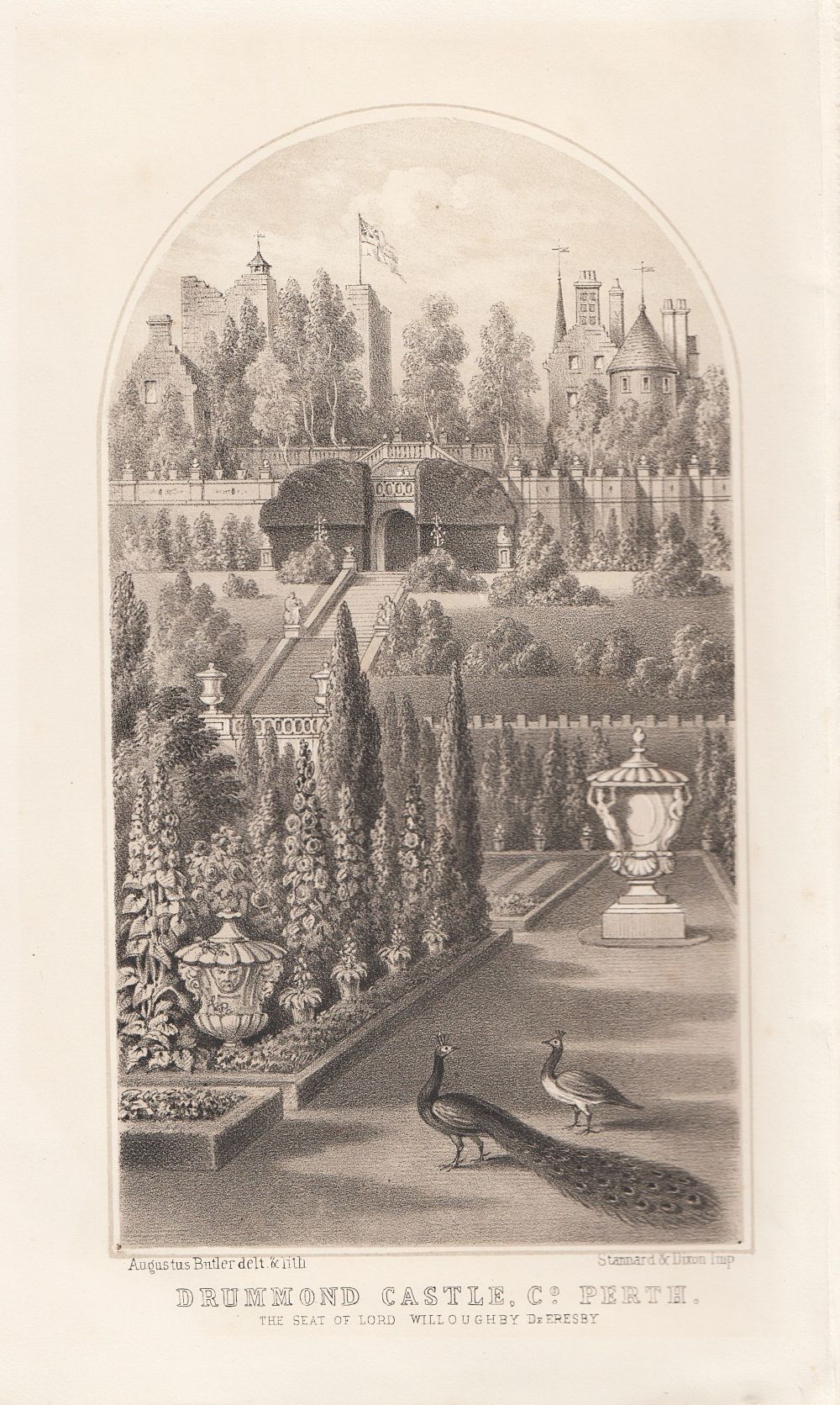Home Antique Prints Scotland (antique print) Tayside (antique prints) Perthshire Stately Houses (antique prints) Drummond Castle, Co. Perth. The Seat of Lord Willloughhby DeEresby. (antique print)