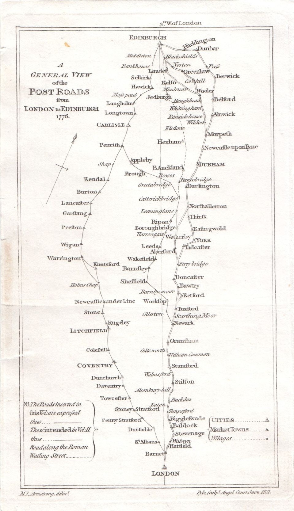 Home Antique Maps, Sea Charts and Town Plans Road Maps M J Armstrong M.J. Armstrong - A General View of the Post Roads from London to Edinburgh 1776.