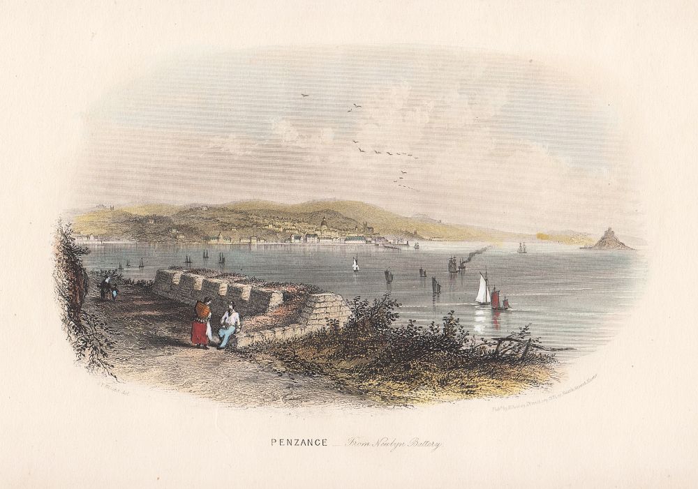 Home Antique Prints England (antique print) Cornwall (antique prints) Cornwall Towns and Villages (antique prints) Penzance (antique print) Penzance - From Newlyn Battery. (antique print)