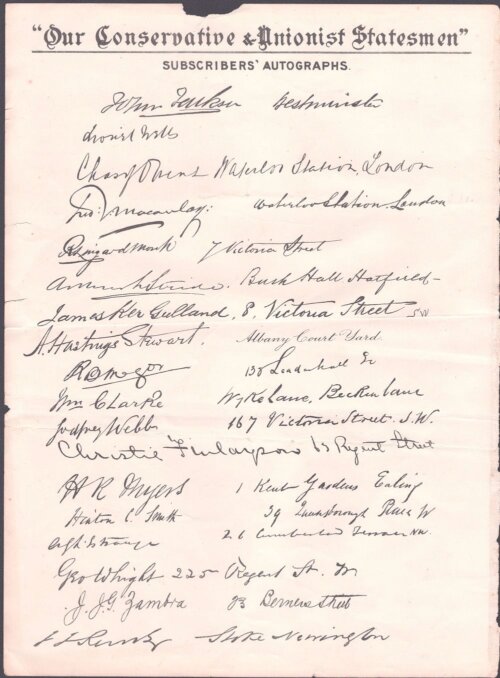 "Our Conservative & Unionist Statesmen" - Subscribers' Autographs.