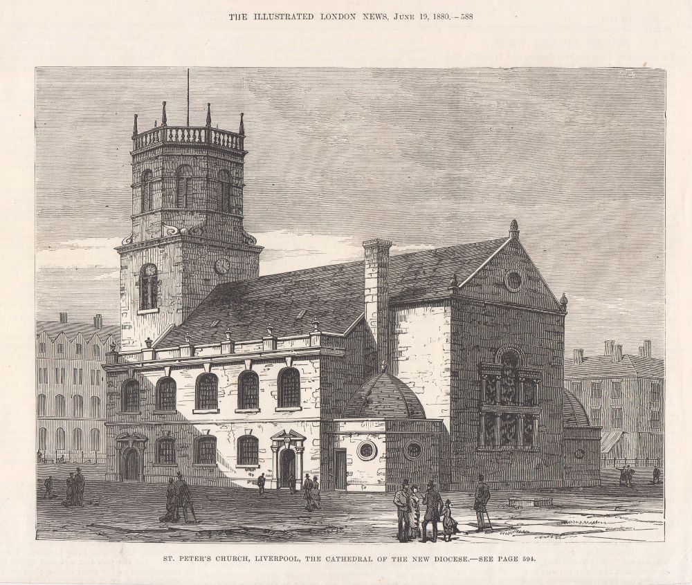 Home Antique Prints England Lancashire Liverpool Churches St. Peter's Church, Liverpool, The Cathedral of the New Diocese.