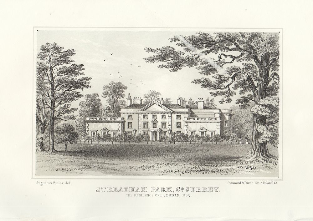 Home Antique Prints England (antique print) Surrey (antique print) Surrey Stately Houses (antique print) Streatham Park, Co. Surrey. The Residence of L. Jordan. Esq. (antique print)