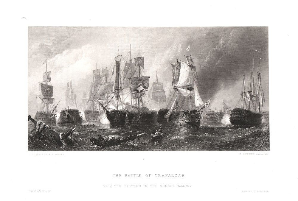 Home Antique Prints Military and Naval - Nelson, Napoleon, Wellington, Waterloo, Crimea Nelson and Naval The Battle of Trafalgar from the picture in the Vernon Gallery