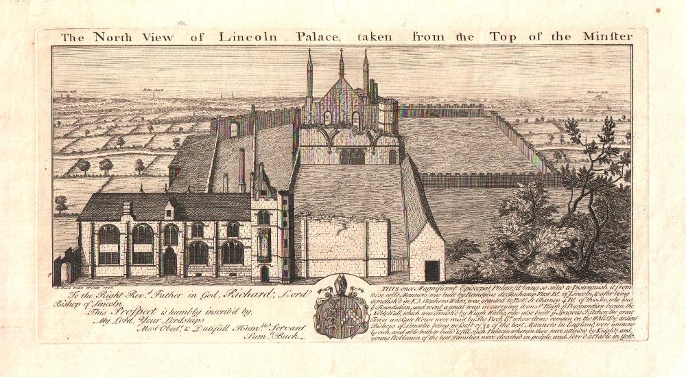 One of the copper-engraved views from the historic work of the brothers Samuel and Nathaniel Buck " Views of Ruins of Castles & Abbeys in England, " 1726-1742 with later hand colouring. Samuel and Nathaniel Buck were the most important topographical artists of the 18th century.  Repaired tear in left margin outide platemark.