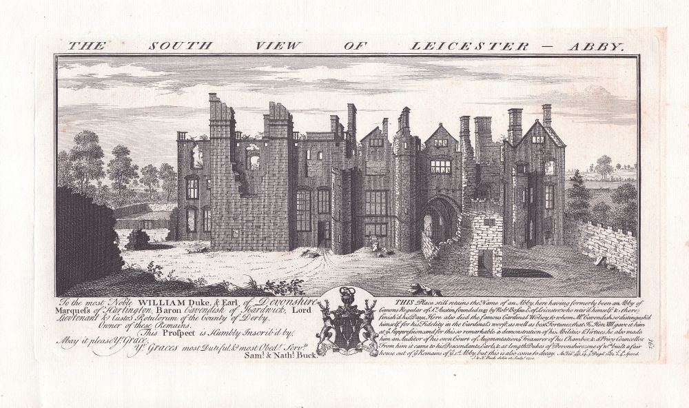 One of the copper-engraved views from the historic work of the brothers Samuel and Nathaniel Buck " Views of Ruins of Castles & Abbeys in England, " 1726-1742. Samuel and Nathaniel Buck were the most important topographical artists of the 18th century. Dated March 25th. 1738. Some staining in right margin.