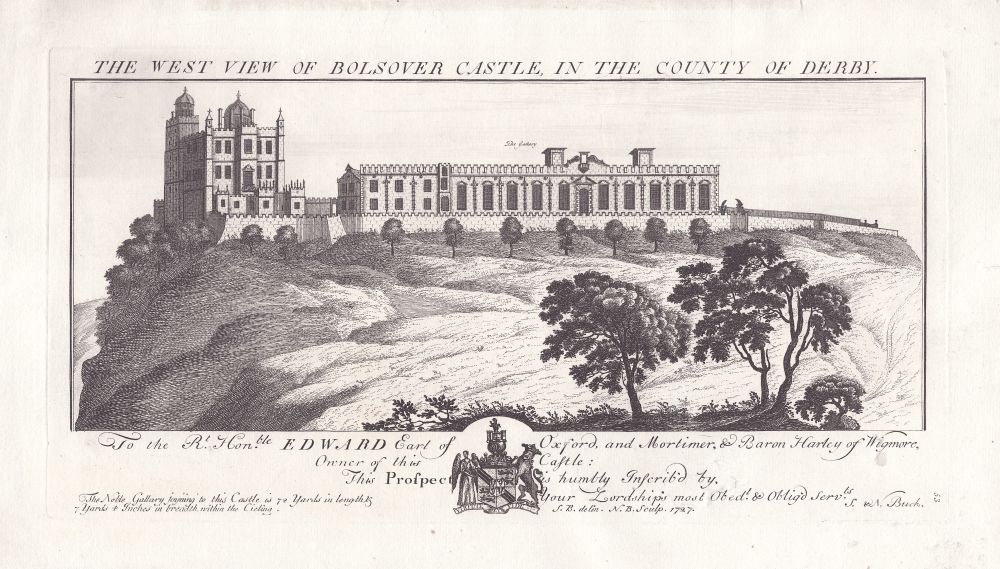 One of the copper-engraved views from the historic work of the brothers Samuel and Nathaniel Buck " Views of Ruins of Castles & Abbeys in England, " 1726-1742. Samuel and Nathaniel Buck were the most important topographical artists of the 18th century.
